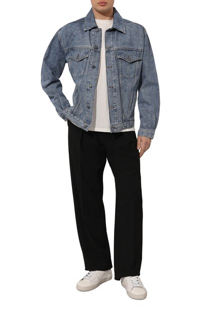 Кеды New Palm 1 с перфорацией на союзке выполнили из зернистой воловьей кожи и замши. Пару на брендированной подошве декорировали эмблемой на заднике, логотипами на язычке и возле шнуровки и аппликацией в виде фирменной пальмы сбоку.