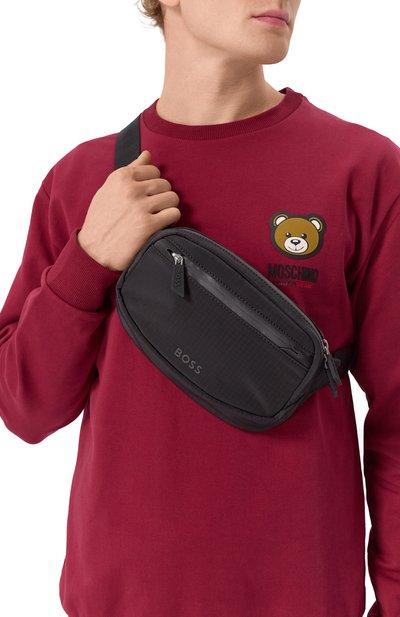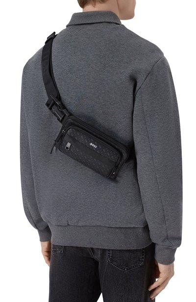Поясную сумку Ray с брендированными короткой ручкой и регулируемым ремнем украсили тисненым логотипом и тремя полосками в фирменных оттенках. Аксессуар с внутренним и внешним карманами выполнили из фактурного текстиля.