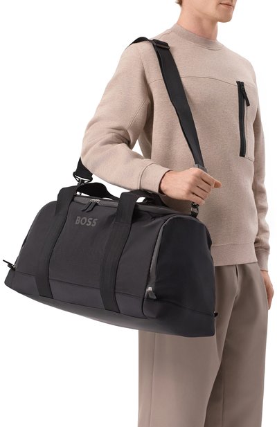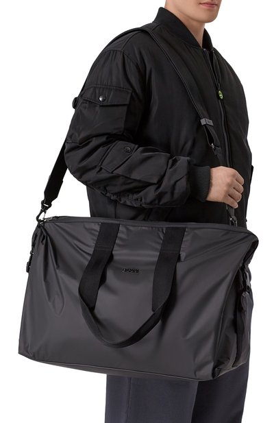 Сумку Oryo с двумя ручками, съемным плечевым ремнем и вставкой для крепления на багаже сшили из полиэстера с прорезиненным покрытием. Внешний и внутренний карманы, как и сам аксессуар, застегиваются молниями.