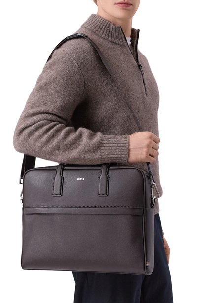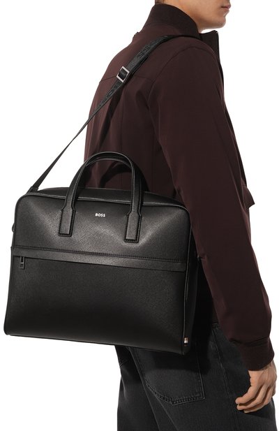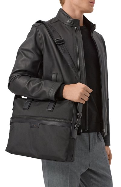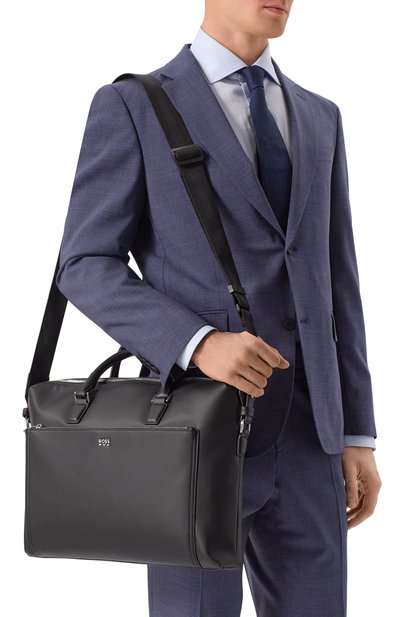 Для изготовления портфеля Ray с двумя ручками и съемным ремнем использовали напоминающий кожу материал из переработанных полиуретана и полиэстера. Модель с тисненым логотипом и фирменным триколором спереди дополнили снаружи карманом с молнией и перемычкой для крепления к чемодану, а внутри – слотом для ноутбука и карманом с молнией.
