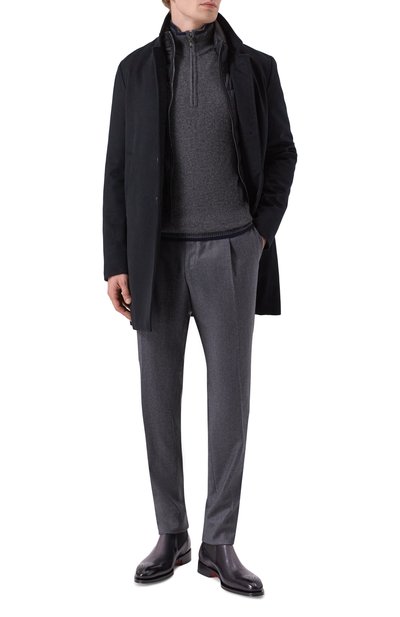 Пальто Milogan из микса шерсти первого пострига и нейлона дополнили стеганой вставкой. У модели с прямоугольными лацканами и шлицей сзади предусмотрели карманы по бокам.