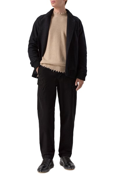 Брюки Getlin с двумя карманами по бокам и защипами под передними шлевками дополнили атласными лампасами и листочками сзади. Модель изготовили из хлопкового бархата.