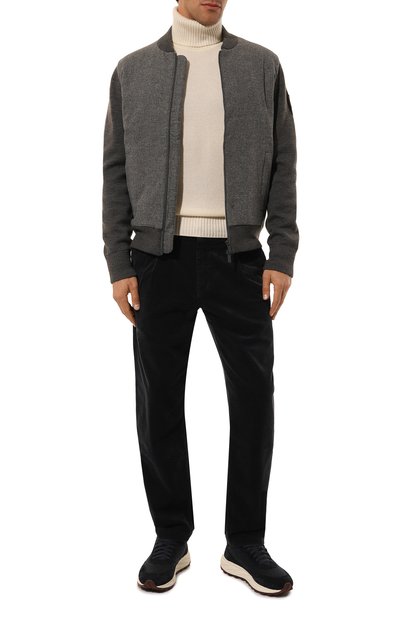 Брюки Getlin с двумя карманами по бокам и защипами под передними шлевками дополнили атласными лампасами и листочками сзади. Модель изготовили из хлопкового бархата.