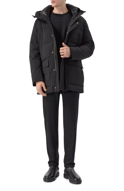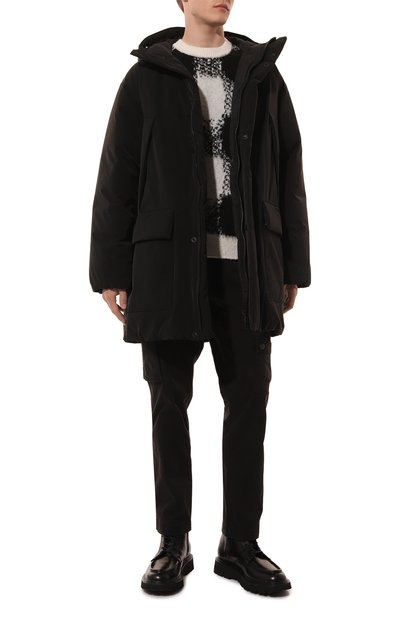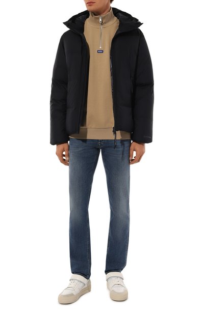 Куртку C-Dalarim на утином пуху выполнили из влагоотталкивающей полиэстеровой микрофибры. Рукав украсили нашивкой с эмблемой Double B. Модель с боковыми карманами и регулируемым капюшоном застегивается молнией, скрытой под штормовой кнопочной планкой.