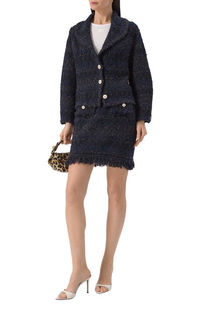Мини-юбку Vokila выполнили из твида с добавлением вторичного хлопка и шерсти первого пострига. Модел ь с короткой бахромой вдоль пояса и по краю застегивается потайной молнией сзади.