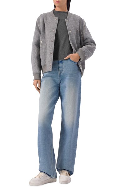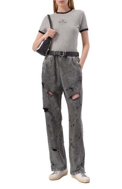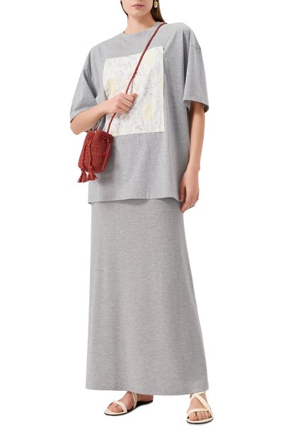 Укороченная приталенная футболка удачно дополнит повседневные образы разной сложности. Для изготовления модели использовали меланжевое джерси стрейч на основе вискозы.