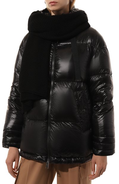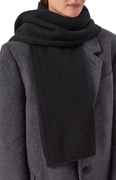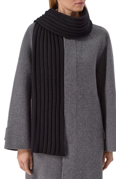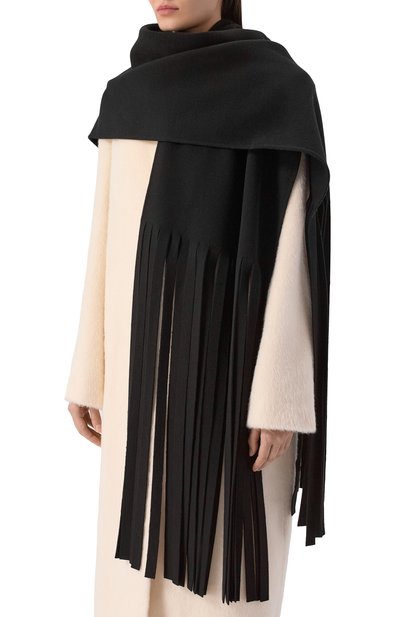 Для изготовления шарфа использовали тонкий трикотаж из чистого кашемира. Широкий аксессуар можно накинуть как палантин.