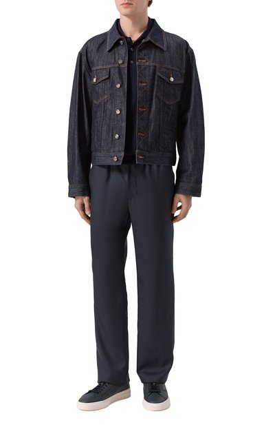 Джоггеры с рифлеными лампасами и регулируемым поясом-кулиской в рубчик связали из микса шерсти и кашемира. Модель дополнили боковыми и задним накладным карманами.