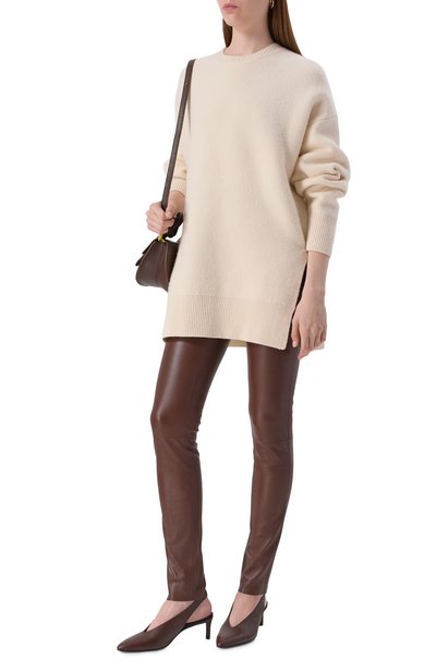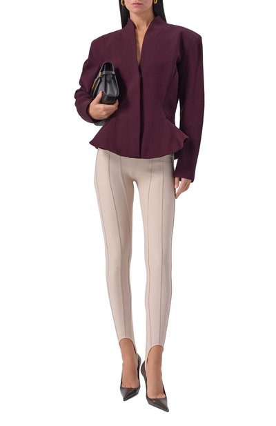 Легинсы Paula выполнили из тонкой шерсти мериноса. Модель с закручивающимся в ролик низом украсили жаккардовым логотипом на широком поясе.