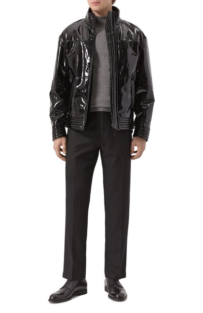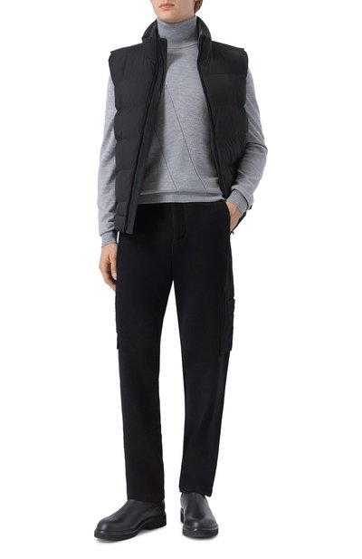 Водолазку выполнили из вторичного полиэстера, сформировав рельефный узор по бокам и на рукавах. Модель с высоким воротом и приспущенной линией плеч декорировали фирменной нашивкой на левом рукаве.