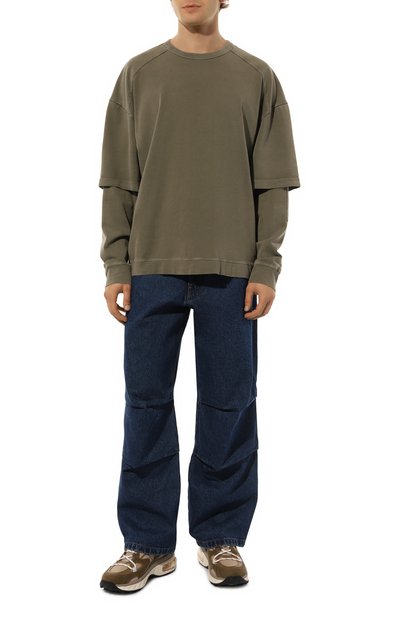 Для изготовления лонгслива с высоким воротом использовали эластичный трикотаж на основе полиэстера. Модель с логотипом на рукаве застегивается короткой молнией.