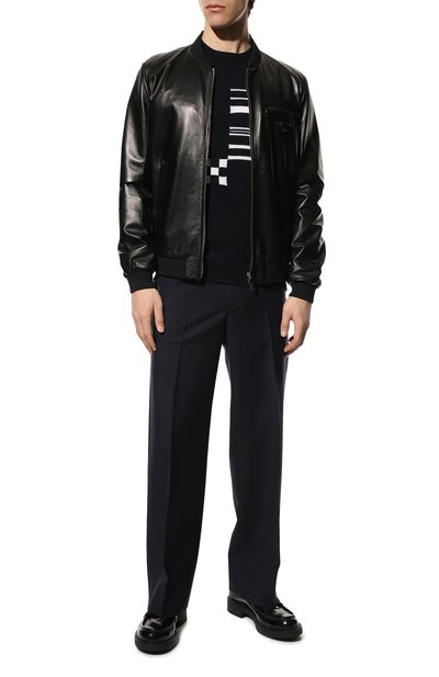 Свитер с сочетанием полосатого и рельефного жаккардовых узоров связали из чистого кашемира. Модель с круглой горловиной, поясом и манжетами в рубчик комфортно носить даже на голое тело.