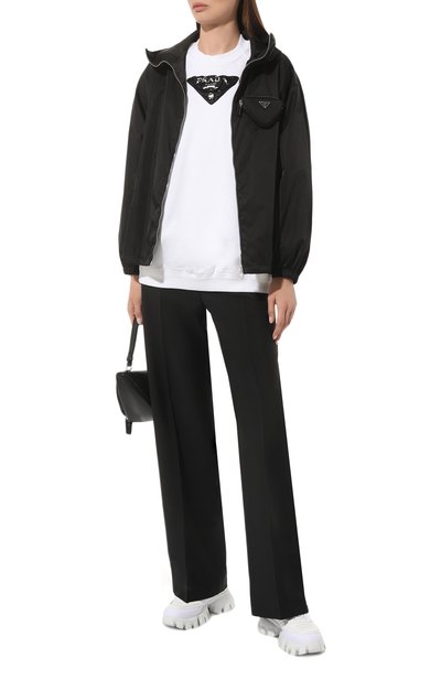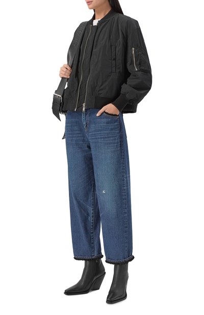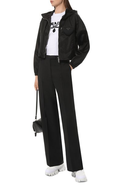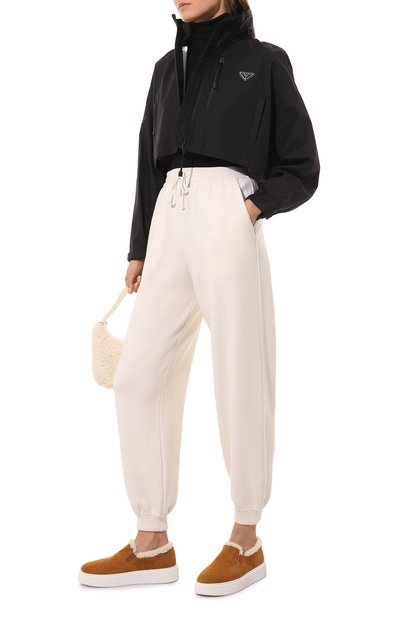Куртку с кулиской по низу и удлиненной закругленной спинкой выполнили из шелкового твила, а для изготовления подклада выбрали атлас в тон. По бокам модель на встречной молнии дополнили врезными карманами с листочками. Изделие утеплили материалом Nativa Silk Pad из микса вторичных шелка и полиэстера, сертифицированных по стандарту GRS.