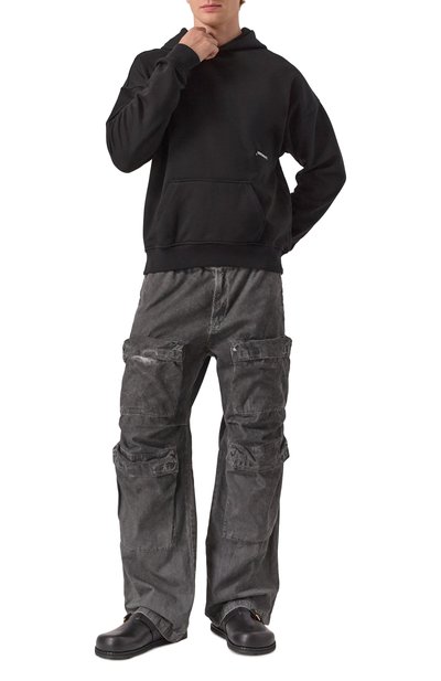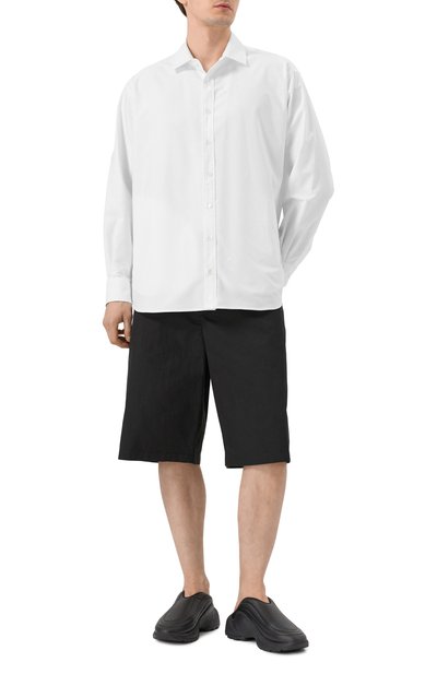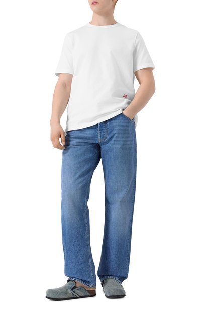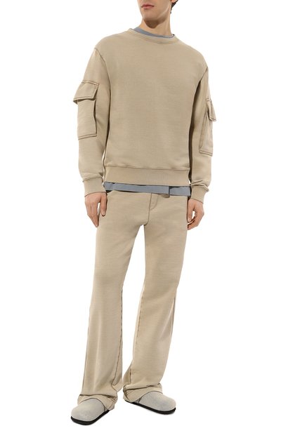 Сабо с вышитым на союзке логотипом марки выполнили из пушистой овчины, дополнив стелькой из такого же материала. Пару установили на тонкую резиновую подошву с зубчатым протектором.