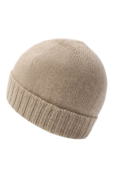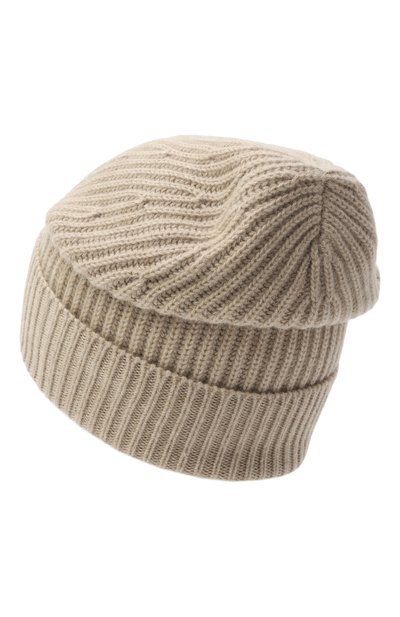 Шапку бини связали английской резинкой из чистого кашемира. Лаконичный аксессуар с широким отворотом плотно облегает голову.