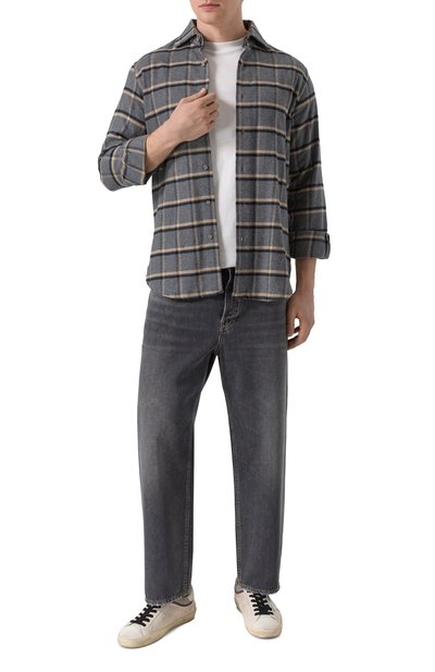 Наравне с состаренной подошвой высокие и низкие кеды Golden Goose Deluxe Brand отличают аппликации в форме звезд. Играя на контрасте с фактурой и цветом основного материала, дизайнеры создают этот декор из однотонной кожи или замши: матовой или металлизированной.