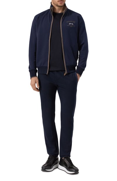 Кроссовки из телячьей кожи и замши утеплили мехом ягненка. Задник укрепили накладкой с ручными стежками, а язычок декорировали брендированным патчем. Пару с перфорацией на мысе установили на контрастную двухслойную подошву с фирменными круглыми шипами.