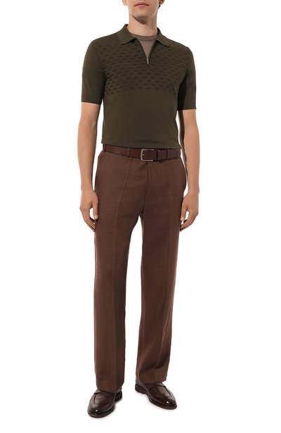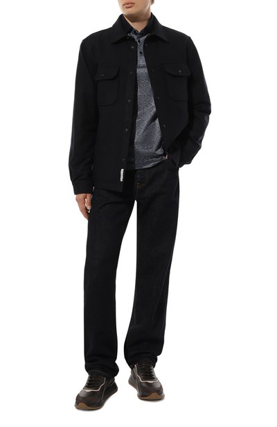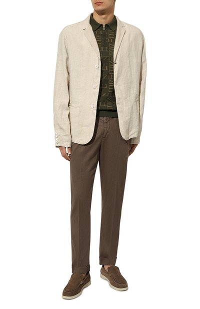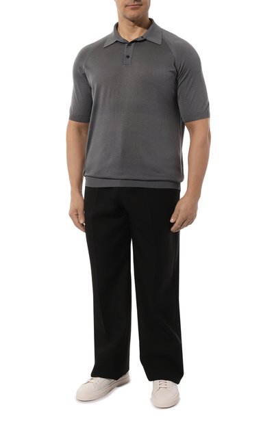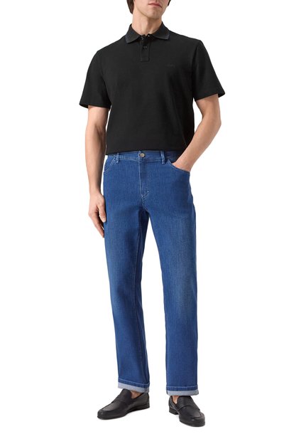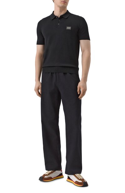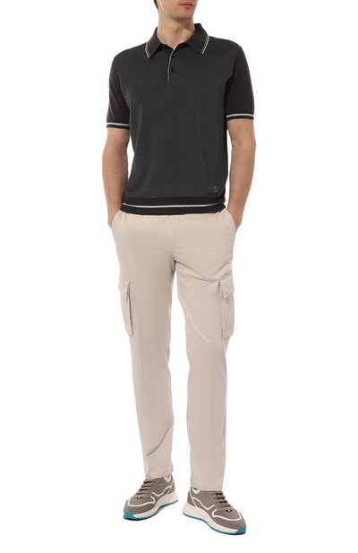 Поло с небольшими боковыми разрезами и нагрудным карманом сшили из полухлопкового трикотажа с жаккардовым паттерном GG. Отложной воротник с контрастным кантом и манжеты выполнили в мелкий рубчик.