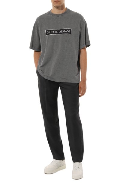 Широкие брюки из плотной ворсованной шерсти станут основой casual-образа. Модель с четырьмя карманами дополнили встречными складками спереди и регулируемыми патами на поясе.