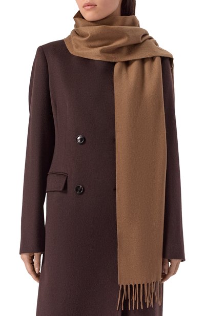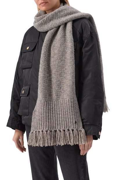 Лаконичный шарф с длинной бахромой дополнит образы с разной верхней одеждой. Для создания аксессуара использовали кашемир с ворсом. Размер изделия 36x180 см.