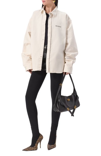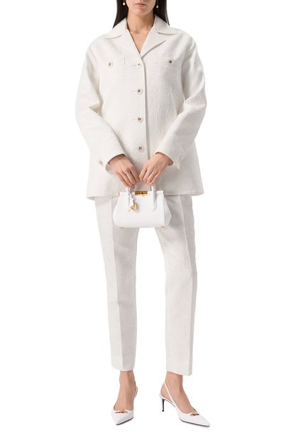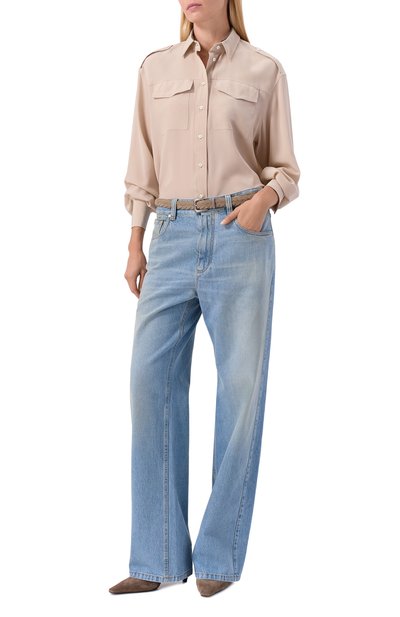 Рубашка из твила на основе шерсти первого пострига составит идеальный дуэт с парной юбкой. Модель кроя Relaxed fit дополнили нагрудными карманами, а воротник подчеркнули серебристыми бусинами.