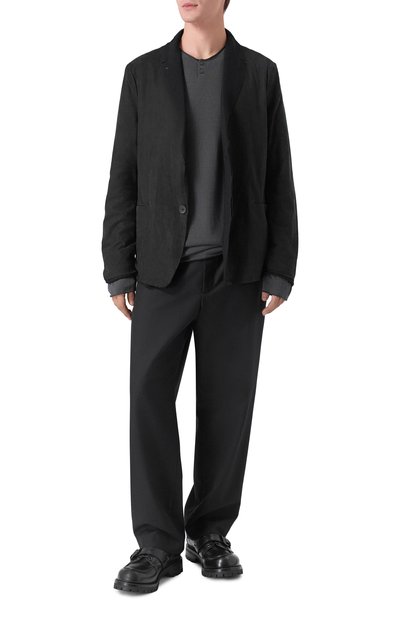 Утепленную парку с льняным подкладом выполнили из замши, а для отделки использовали шерстяной трикотаж. Модель с супатной застежкой и разрезом с завязками сзади дополнили врезными боковыми карманами.
