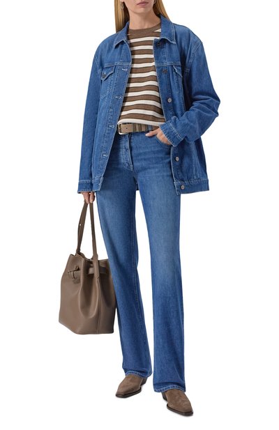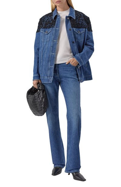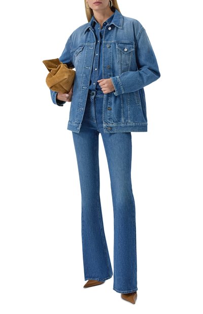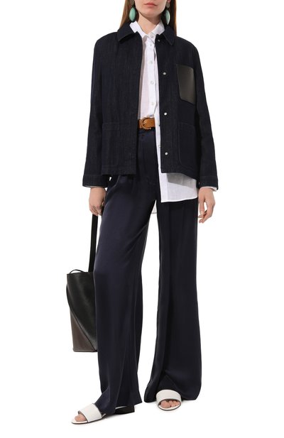 Куртка из японского денима на основе хлопка и шелка составит гармоничный образ total denim с парными джинсами. Укороченную модель с нагрудными карманами дополнили брендированным патчем на поясе.