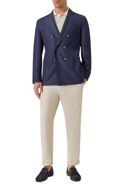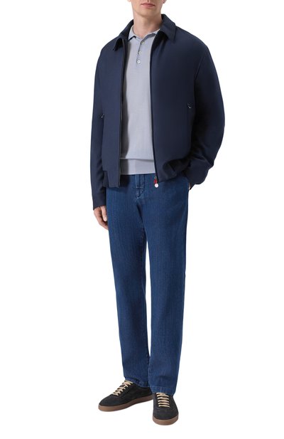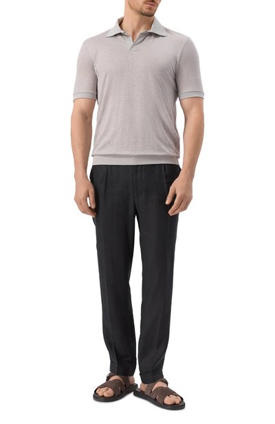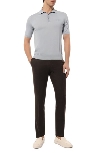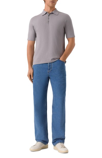 Поло с манжетами и поясом в рубчик связали из шерсти мериноса диаметром 13,5 микрон. Модель застегивается перламутровыми пуговицами.