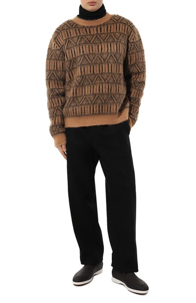 Патинированные лоферы из телячьей кожи установили на литую резиновую подошву, украшенную логотипом. Названием марки также декорировали вставку между двух пряжек Gancio на союзке.