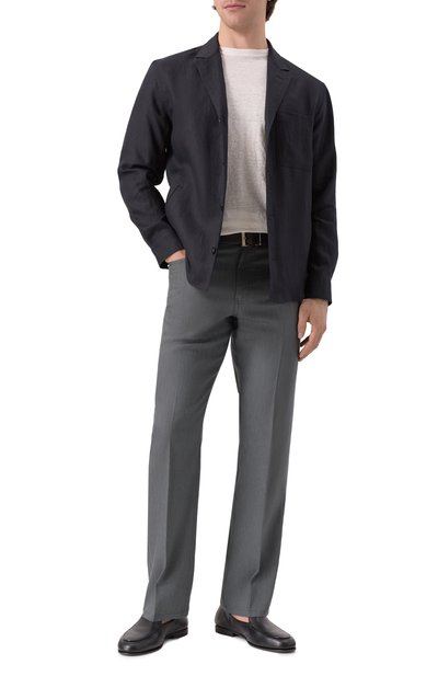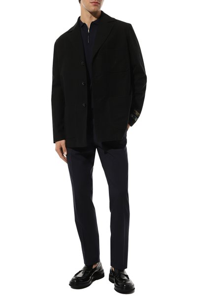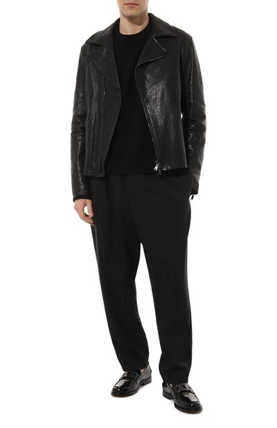 Пенни-лоферы с рельефным швом на мысе выполнили из гладкой телячьей кожи. Задник модели на широкой протекторной подошве декорировали вставкой с тисненым логотипом марки.
