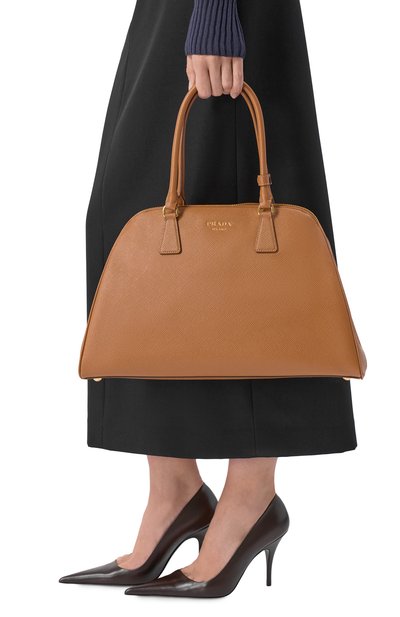 Сумку Hug с двумя ручками, съемными плечевым ремнем и брелоком выполнили из телячьей замши, выделанной под вельвет. Аксессуар с внутренним карманом на молнии и застежкой-тоглом дополнили по бокам ремешками с фирменными пряжками Gancio.