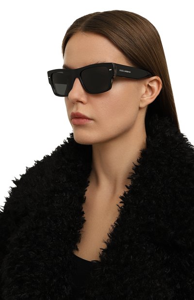 Солнцезащитные очки с линзами, не пропускающим ультрафиолет, выполнили из ацетата. Брендированные дужки украсили металлической вставкой с вырезанным лазером кружевным мотивом под полупрозрачным верхним слоем.