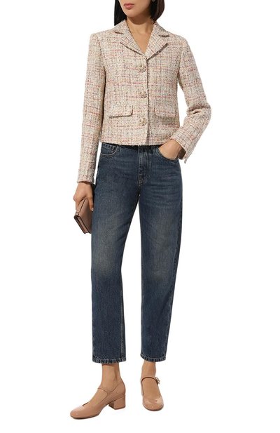 Слингбэки Robbie Sling с зауженным мысом и неглубоким вырезом выполнили из замши. Регулируемый ремешок на открытой пятке подчеркнули фирменной пряжкой-монограммой Ribbon. Туфли с внутренней отделкой из кожи установили на каблук kitten heel.