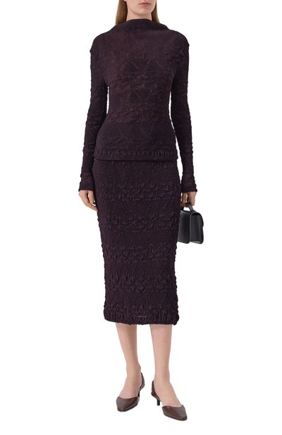Облегающий топ Ecursa с геометричным мотивом составит гармоничный дуэт с парной миди-юбкой. Для создания модели с увеличенной горловиной выбрали жатый полиэстер.