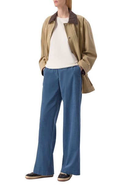 Широкие брюки Eli выполнили из стрейчевого вельвета на основе органического хлопка. Модель с пятью карманами декорировали брендированным кожаным патчем сзади.