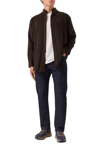 Текстильные кроссовки Mick, усиленные замшевыми накладками, утеплили густой овчиной. Модель с аппликациями-иероглифами по бокам и брендированной нашивкой на язычке поставили на широкую подошву с фирменными печатями и штампами.