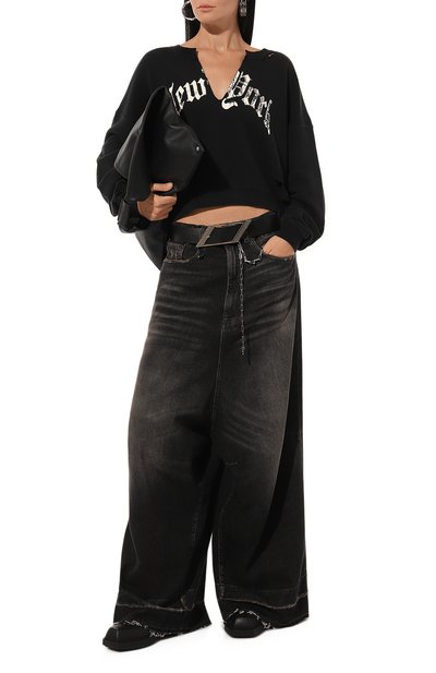 Прямые джинсы Kelly с декоративными потертостями и заломами выполнили из хлопкового денима. Модель дополнили пятью карманами.
