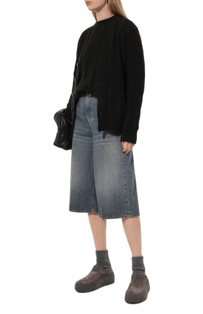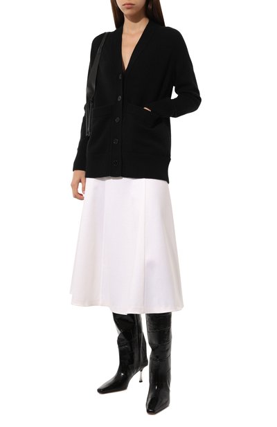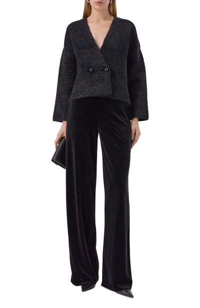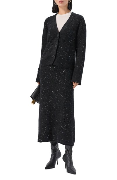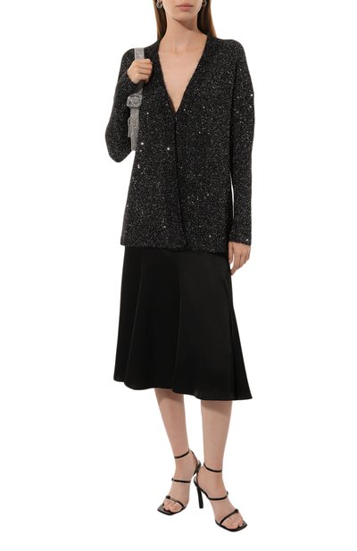 Кардиган с рельефным черепом на пуговицах выполнен из трикотажа на основе шерсти и нейлона. Модель украшена паттерном в виде звезд, который подчеркнули вышивкой пайетками.