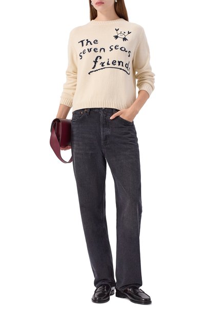 В коллекцию Disney Special Editions вошел свитер New Queen с изображением Микки Мауса, выполненным в технике интарсии. Модель с круглой горловиной в рубчик связали из шерстяной пряжи с добавлением вискозы, кашемира и полиамида.