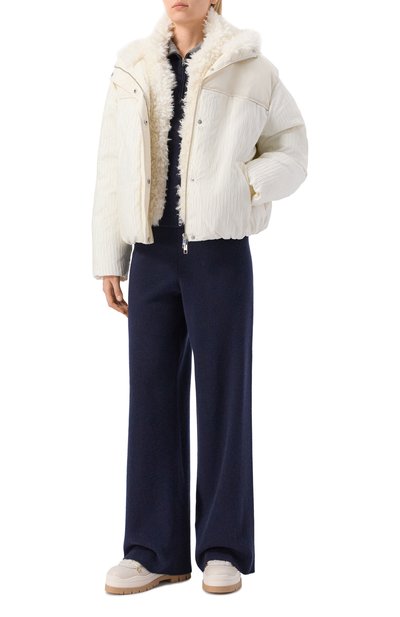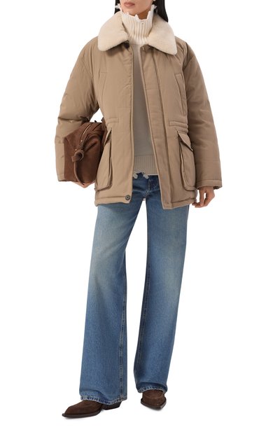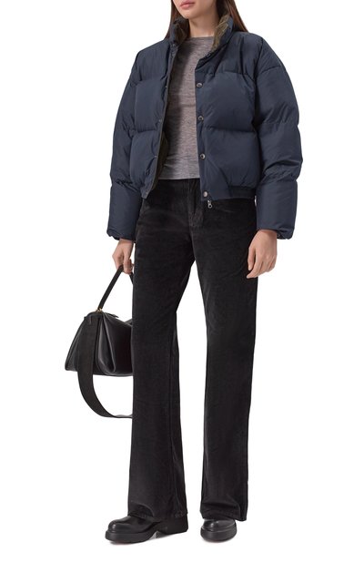 Утепленную куртку Maddy English кроя Relaxed fit выполнили из полиэстера с мотивом пье де пуль. Принадлежность пуховика марке обозначили логотипом, вышитым над эластичной манжетой. По бокам предусмотрели врезные карманы, а снизу – пота йную кулиску. Модель с воротником-стойкой застегивается молнией.