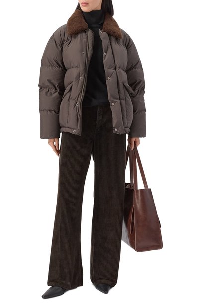 Утепленную куртку Maddy English кроя Relaxed fit выполнили из полиэстера с мотивом пье де пуль. Принадлежность пуховика марке обозначили логотипом, вышитым над эластичной манжетой. По бокам предусмотрели врезные карманы, а снизу – потайную кулиску. Модель с воротником-стойкой застегивается молнией.