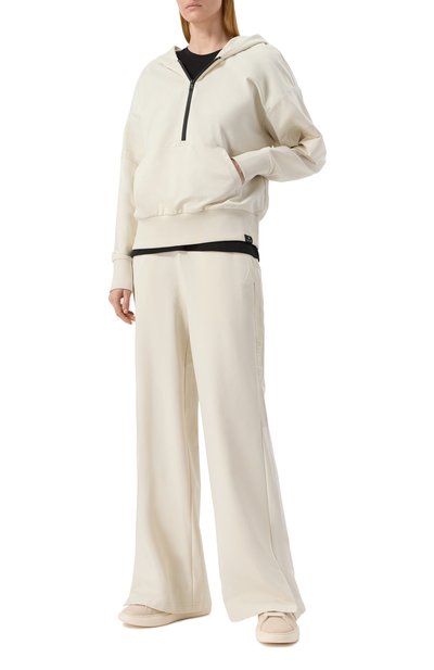 В капсульную коллекцию Peanuts вошел пуловер New Queen с изображением Снупи. Модель с круглой горловиной, поясом и манжетами в рубчик связали из шерстяной пряжи с добавлением вискозы, кашемира и полиамида.