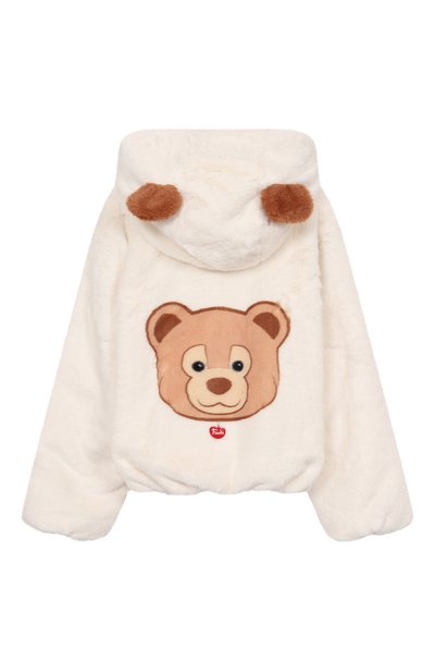 Шубу из напоминающего овчину полиэстера украсили изображением медвежонка с подвеской Trudi на спинке и аппликациями в виде ушек на капюшоне. Модель с эластичными манжетами и боковыми карманами застегивается молнией.