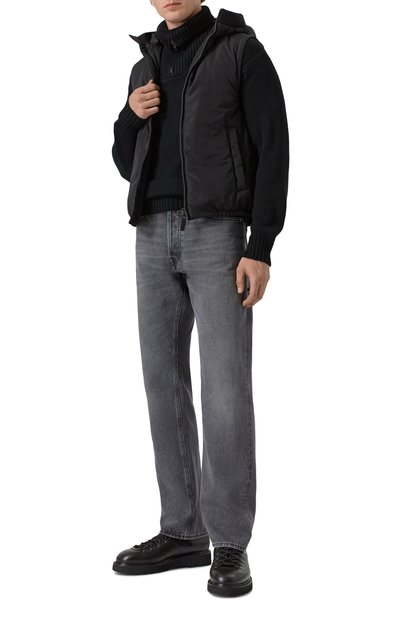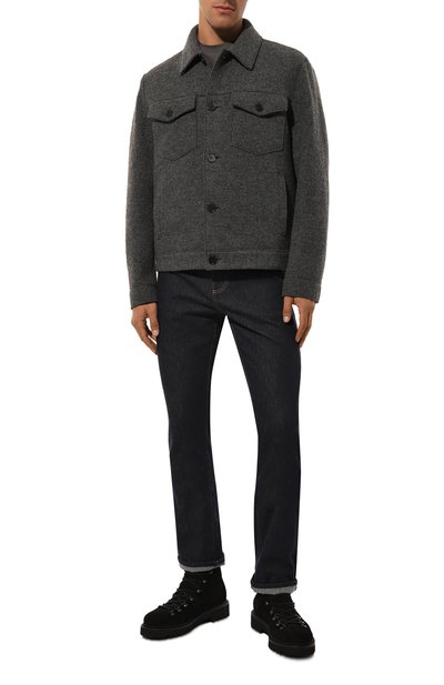 Высокие ботинки из телячьей замши утеплили стриженой овчиной. Хайкеры конструкции Blake установили легкую протекторную подошву из EVA.