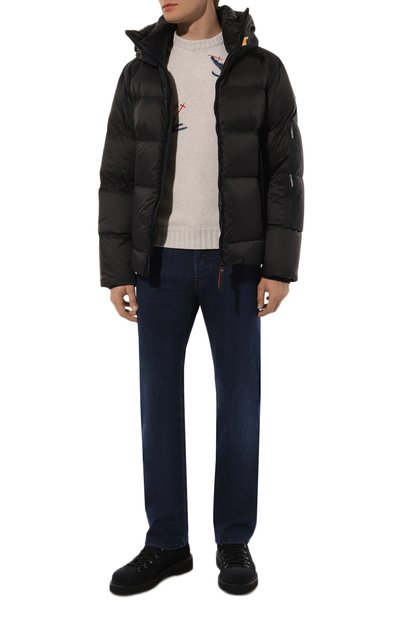 Стеганую куртку на утином пуху выполнили из влаго- и ветростойкого нейлонового микрорипстопа D.D. Shell плотностью 7 ден. Модель с эластичными манжетами, капюшоном и внутренней кулиской на талии дополнили боковыми карманами с молниями и нарукавным с фирменной линзой.