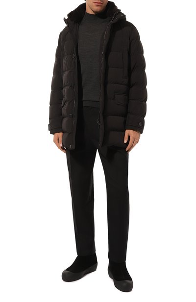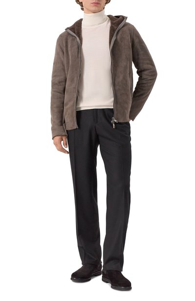Ботинки Curling на широкой брендированной подошве Vibram Arctic Grip с цепким протектором – обновленная версия модели, созданной для швейцарской олимпийской сборной в 1950-х. Для изготовления утепленной пушистой овчиной пары с текстильной отделкой и защитной накладкой на мысе использовали прорезиненную ко жу.