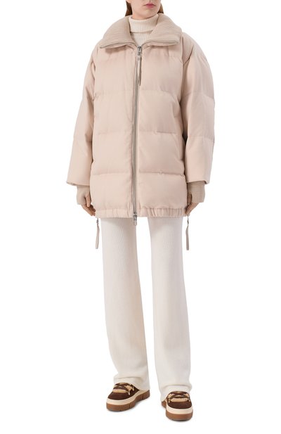 Стеганый пуховик W Storm с эмблемой марки на манжете и брендированной нашивкой снизу выполнили из влагоотталкивающего нейлона Iperfifteen. Сама модель с капюшоном, как и боковые карманы, застегивается молнией.