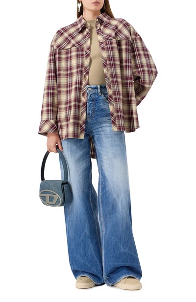 Клетчатую рубашку с бантовой складкой на слегка удлиненной спинке выполнили из хлопковой фланели. Модель с закругленным низом гармонично дополнит повседневный образ.