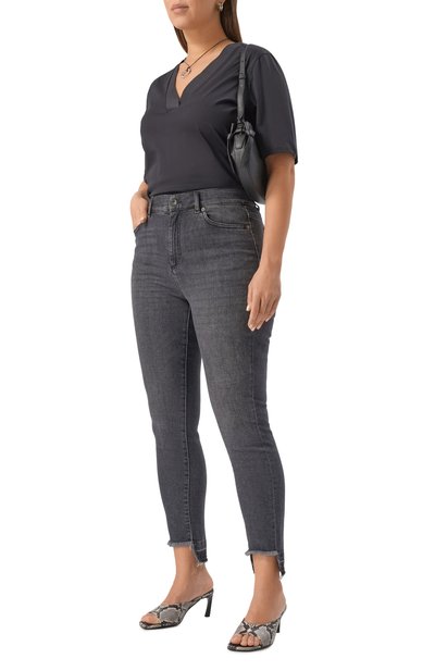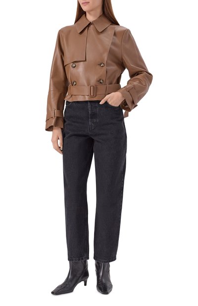 Укороченные широкие джинсы Douglas с вытачками на коленях и по бокам выполнили из неэластичного денима. Немного выбеленную модель с пятью карманами декорировали брендированным кожаным патчем на поясе сзади.
