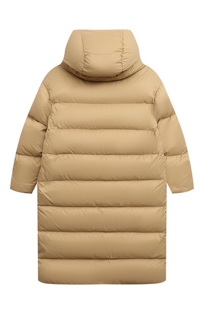 Пальто на гусином пуху выполнили из влагоотталкивающего нейлона Chamonix. Спереди разместили металлическую литеру H, а съемный регулируемый капюшон украсили брендированной пластиной. Модель с манжетами из полушерстяного трикотажа застегивается встречной молнией, а боковые карманы – кнопками.